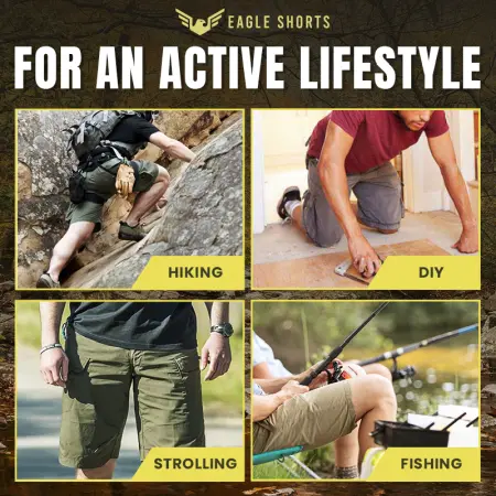 Maximize efficiency with Eagle Shorts, featuring 8 intutive pockets for easy access and organization, perfect for active days.